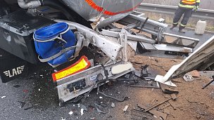 Hasiči zasahují u nehody dvou nákladních aut na D1 u Lipníku n.B. na 301,5 km. Po střetu zůstal v jednom vozidle zaklíněn zraněný řidič, ze zdeformované kabiny jej dostali pomocí vyprošťovacích nástrojů. Předali jej do péče záchranářům.