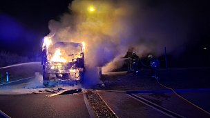 V katastru obce Beňov na Přerovsku na silnici 0559 zasahují hasič u požáru autobusu. Hasiči dostali požár pod kontrolu během pár minut.